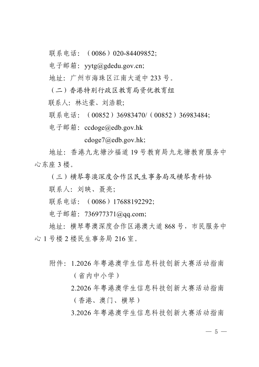 广东省教育厅、珠海市人民政府、横琴粤澳深度合作区执行委员会、香港特别行政区政府教育局、澳门特别行政区政府教育及青年发展局