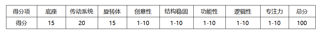 (1)完成底座的搭建得15分;完成传动系统的搭建得20分;完成旋转体的搭建得15分;