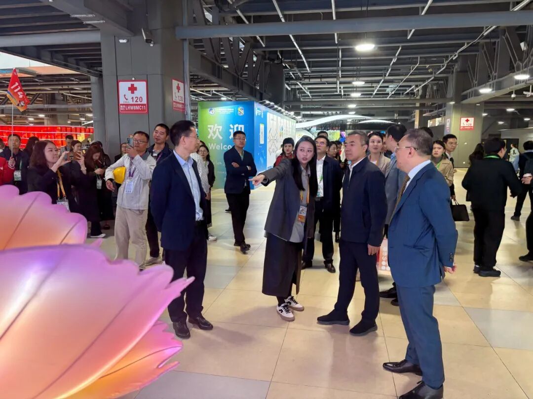 11月5日,中国彩灯夜游行业引领者海天文化正式亮相2025年中国国际进口博览会,带来非遗彩灯新品“川韵仙伶”首秀首发。四川省商务厅党组书记、厅长惠朝旭莅临视察,为这份文化创新点赞。