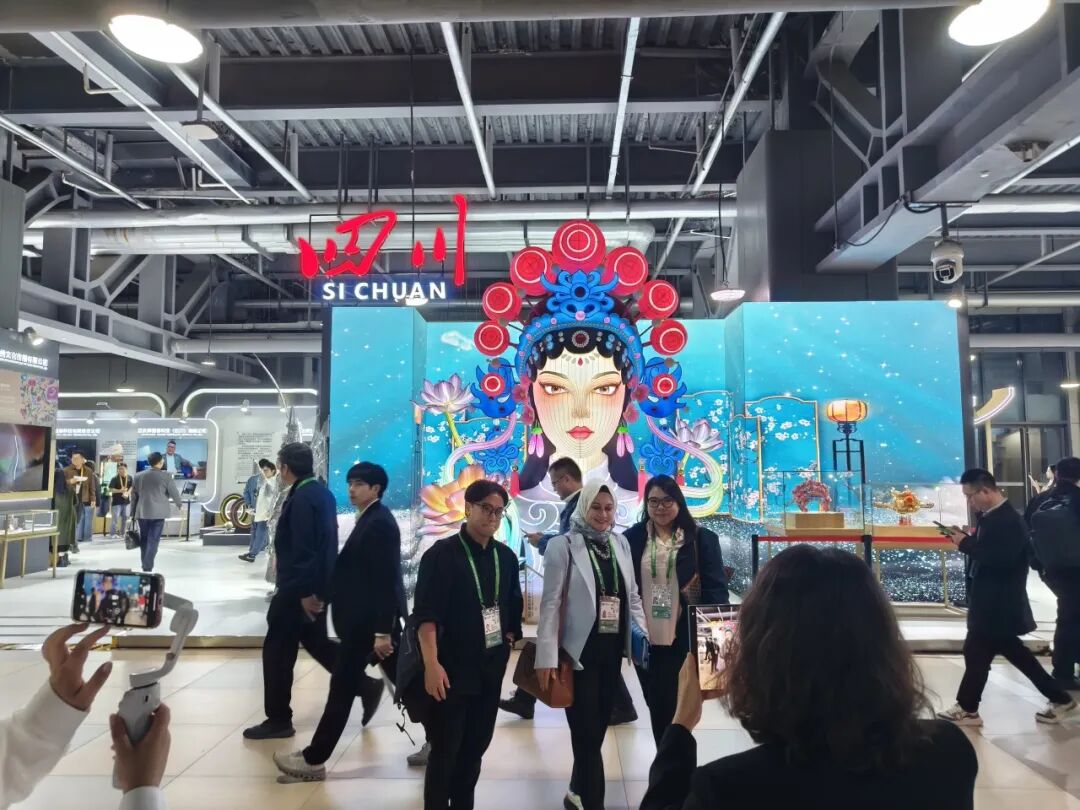 在这场国际盛宴中,位于国家级步行街展示专区W3的四川馆格外亮眼。390平方米的展示空间里,从传统非遗到现代科技,从文旅融合到智能生活,全方位展现四川消费新动能,传递开放新机遇。