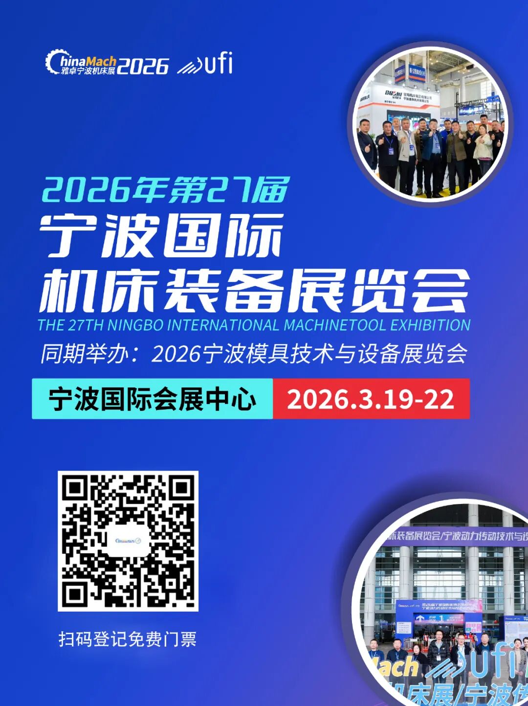 第27届宁波国际机床装备展览会定于2026年3月19日至22日在宁波国际会展中心盛大召开。本次展会面积近35000平米,1500个展位,分机床装备、模具技术与设备、机器人自动化、激光钣金四大板块。观众预登记已开启,领取免费门票免排队~