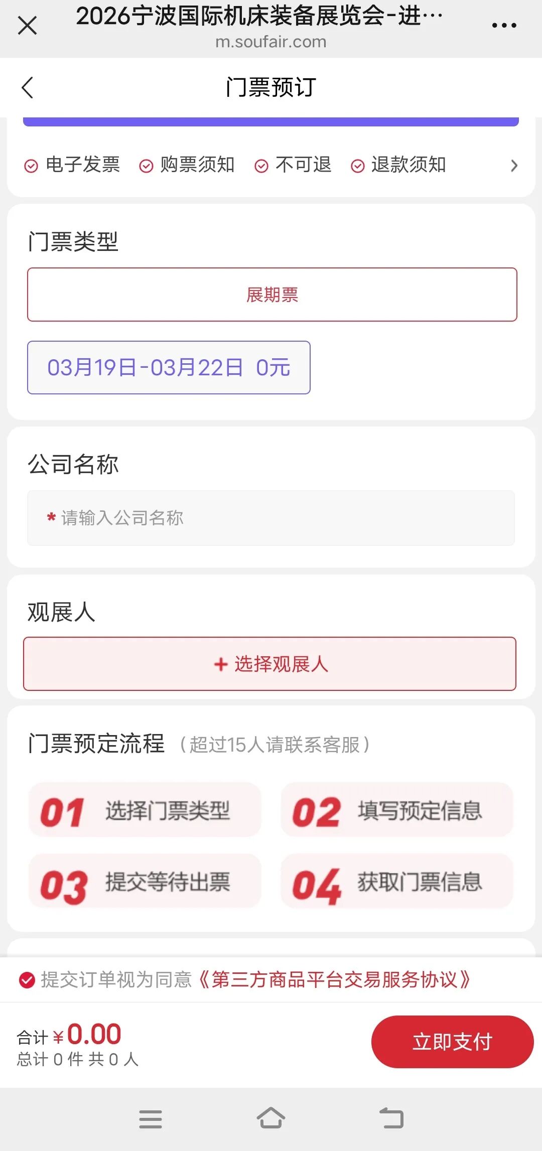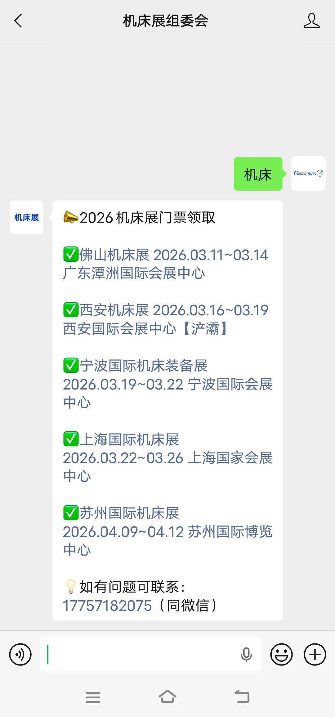 关注【机床展组委会】公众号,后台对话框回复“机床”,在弹出的链接中选择对应的展会,点击链接进入门票预登记页面。