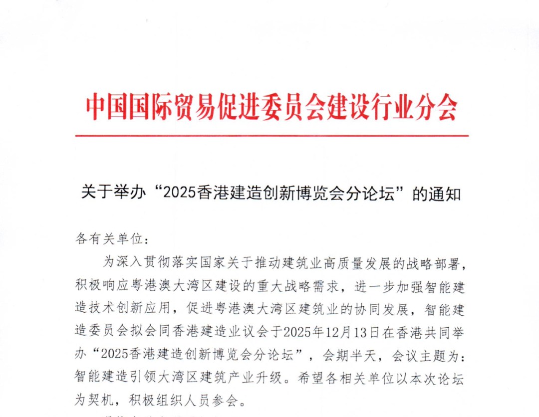 2025香港建造创新博览会分论坛将于2025年12月13日在香港会议展览中心盛大举办。作为香港建造业议会三年一度旗舰活动“建造创新博览会(CIExpo)”的分论坛之一,本次分论坛由中国建设行业贸促会智能建造委员会与香港建造业议会联合主办,香港互联立方有限公司承办,以“智能建造引领大湾区建筑产业升级”为主题。旨在聚焦智能建造技术在大湾区建筑业中的应用现状与发展趋势,探讨如何通过智能建造技术提升建筑产业的生产效率、质量水平与可持续发展能力,推动大湾区建筑业向智能化、工业化、绿色化方向转型升级,为大湾区的经济社会发展提供有力支撑。届时将汇聚政、企、学界领袖,共同探索大湾区建筑业高质量发展的新路径、新模式。