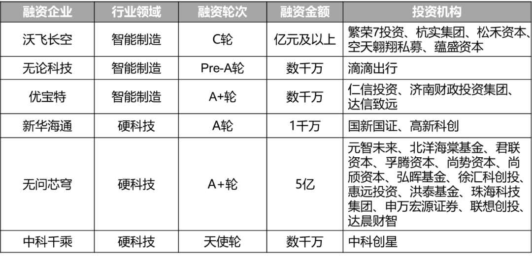 1.沃飞长空完成CNY亿元及以上C轮融资