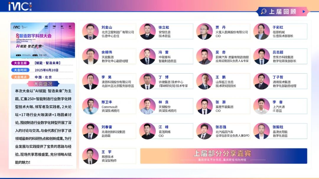 由勤哲文化主办的IMC 2025第九届智造数字科技大会将于2025年12月19日 在 广州 再次起航!本次大会以“新生 · 数智先行”为主题,聚焦AI大模型、智能制造、5G、智能工厂、大数据、边缘算法、智慧研发、智慧供应链等当下制造行业热点难点,邀请250+制造企业数智化转型引领者、行业知名数字技术专家及优秀信息化解决方案服务商,携手探索未来智造趋势突破点,共同实现数字科技赋能制造新生态的无限可能!