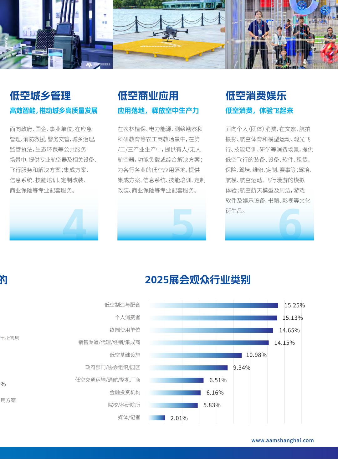 三大国有展览集团联手赋能低空,凭借进博会、世界人工智能大会、上海车展的经验资源,组织海内外专业观众、主流媒体资源,组织国际会议、头部展商和专家学者参与,合力打造低空经济国际化交易交流平台。