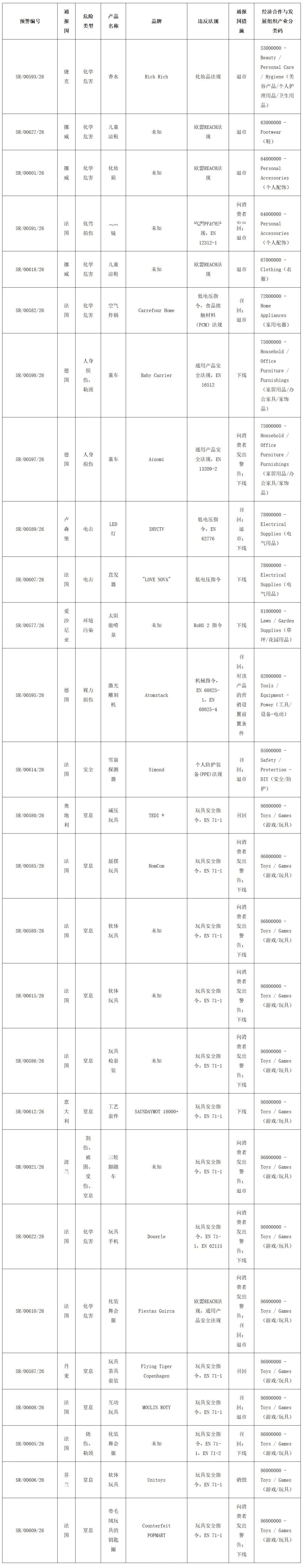 欧盟委员会非食品类快速预警系统(RAPEX)第8周
