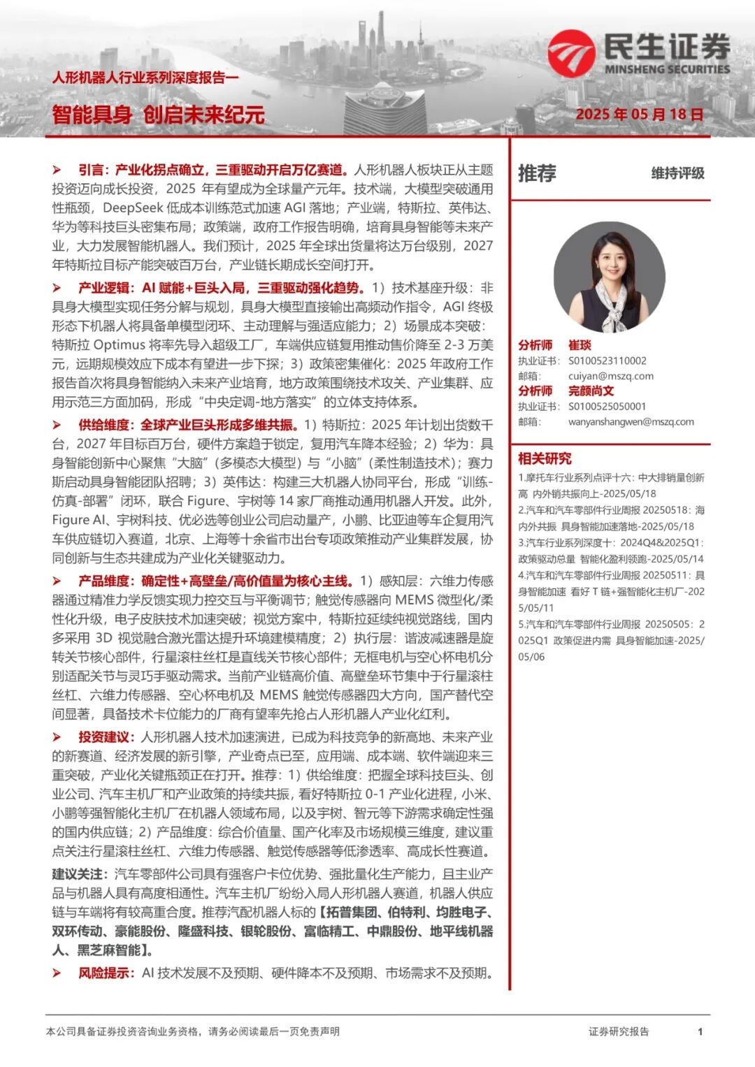 2025年中期人形机器人行业投资策略报告:量产破局,链动新机|附25页PDF文件下载