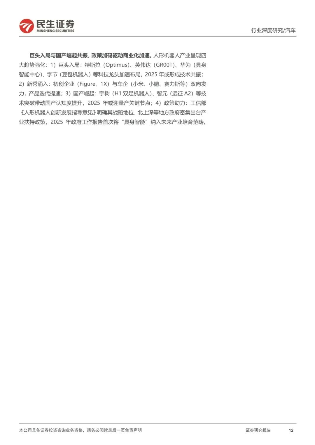 2025国内人形机器人行业深度报告:量产元年,百家争鸣|附64页PDF文件下载