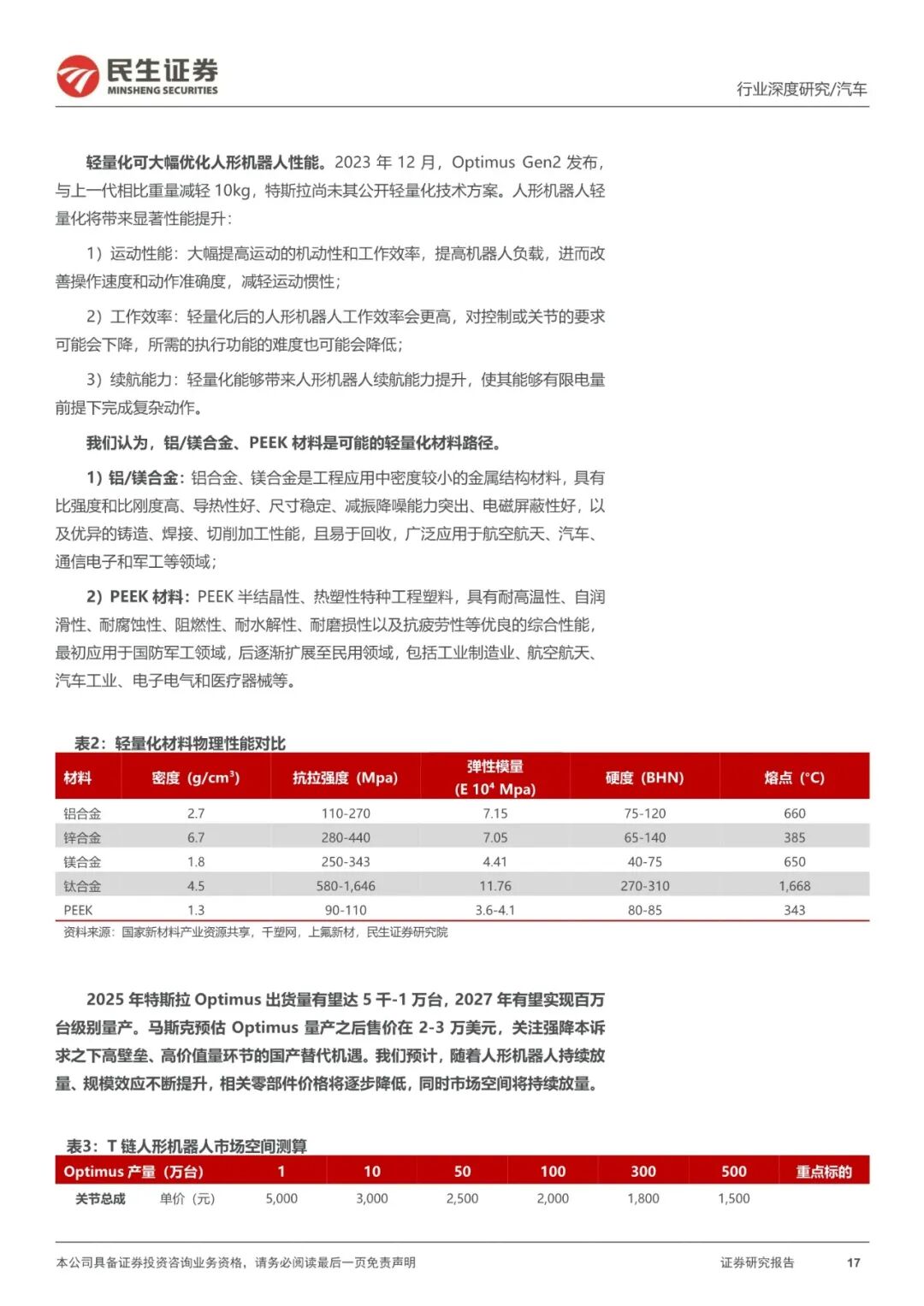 人形机器人行业深度报告:人形轻量化大势所趋-镁合金&“以塑代钢”是核心|附40页PDF文件下载