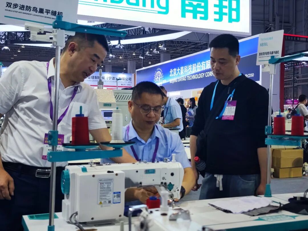 在南邦展区,升级版NB无鸟巢大师平缝机系列成为现场观众关注的热门产品。本次展出的NB56、NB56L加长款、NB51L加长款三大机型,搭载南邦最新研发的无鸟巢技术,从根源上解决了传统平缝机起缝不上线、断线及线团形成“鸟巢”的行业痛点。大幅提升缝制工序的流畅性与成品合格率,为服装生产企业带来更高效的缝制体验。
