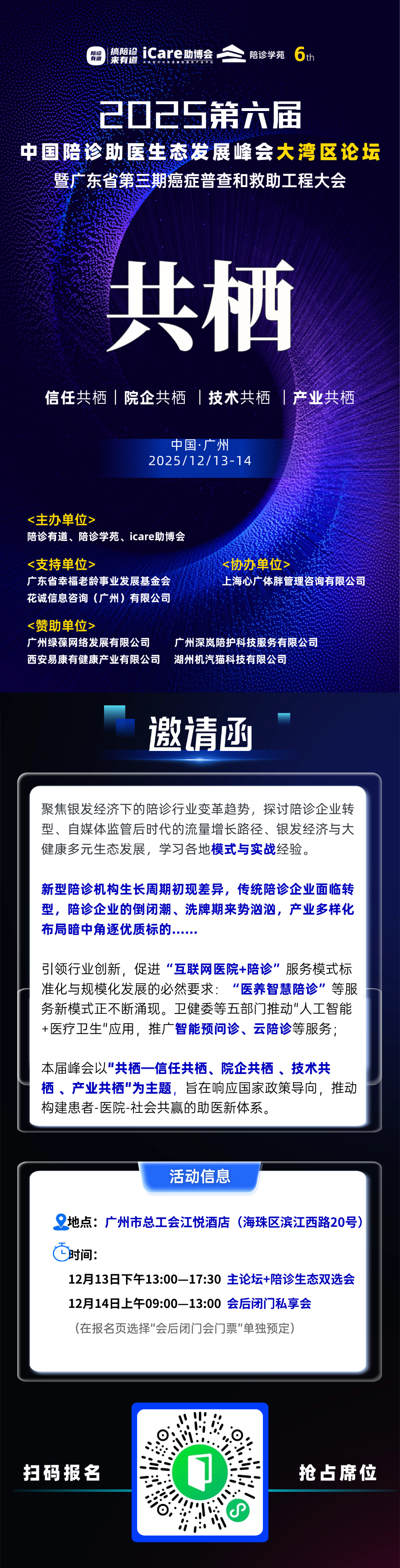 话题:#陪诊有道#陪诊服务#陪诊师#助博会#陪诊学苑#2025第六届中国陪诊助医生态发展峰会大湾区论坛#陪诊生态双选会#陪诊学苑#陪诊经营私享会‍‍‍‍‍‍‍‍‍‍‍‍‍