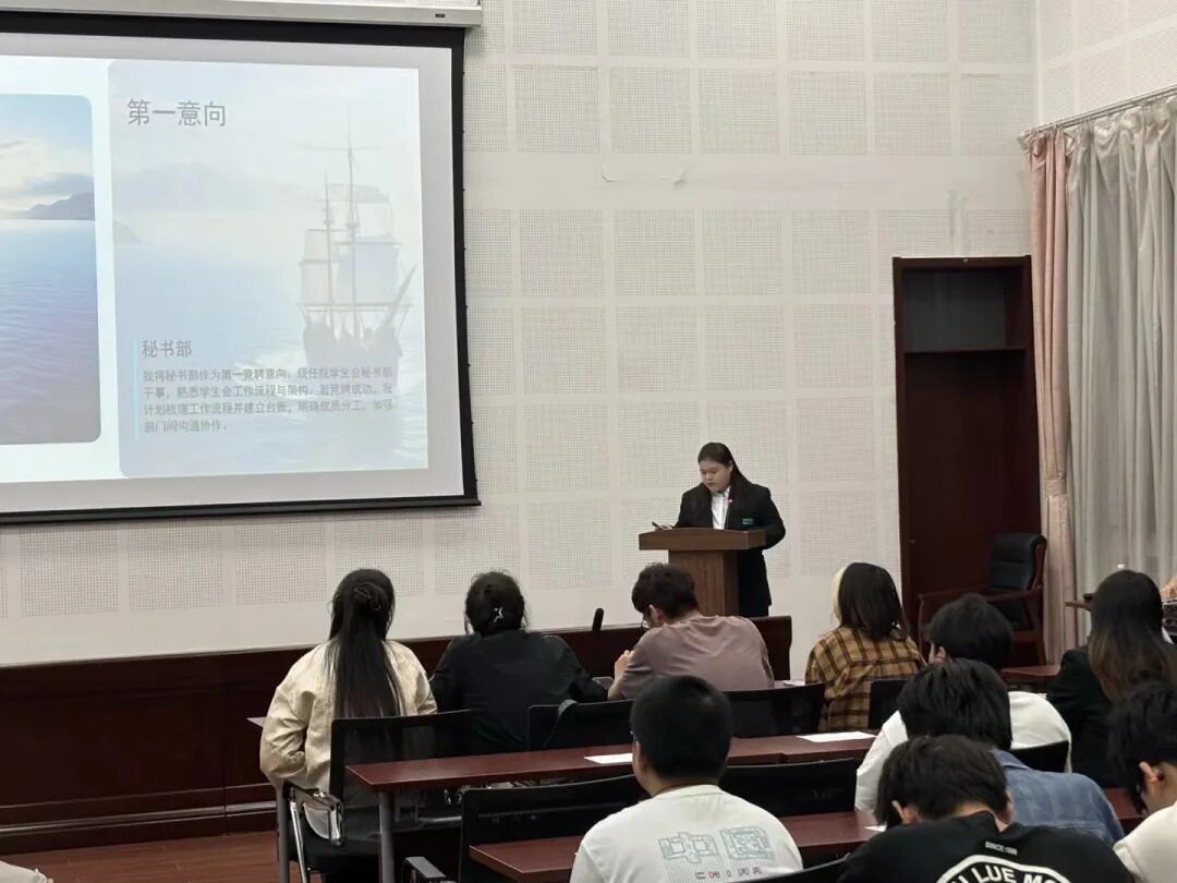学生会指导教师桑美凤老师和侯琨老师总结了过去一年的工作成果,肯定了学生会成员们的努力,并对学生会成员们的未来发展表达了殷切期望,希望同学们坚守初心、砥砺前行,为校园注入更多活力。