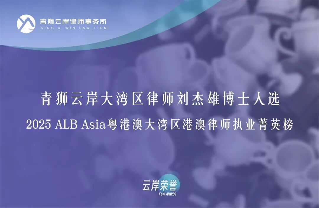近日,《亚洲法律杂志》(ALB)发布了“2025 ALB Asia粤港澳大湾区港澳律师执业菁英榜(ALB Asia Top GBA Dual-Qualified Lawyers 2025”。青狮云岸大湾区律师刘杰雄博士凭借丰富的执业经验与卓越的跨境法律服务能力入选榜单,同时彰显了云岸在大湾区提供高端法律服务的强大实力。
