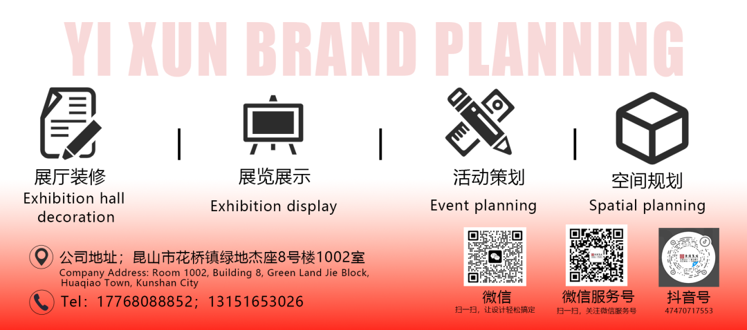 欢迎光临宜循策划,我们是一家专注做企业展厅,展览展示设计搭建,提供设计制作,现场制作、现场撤展的全程一站式服务。进场之前可以预搭建,期待与您的合作!