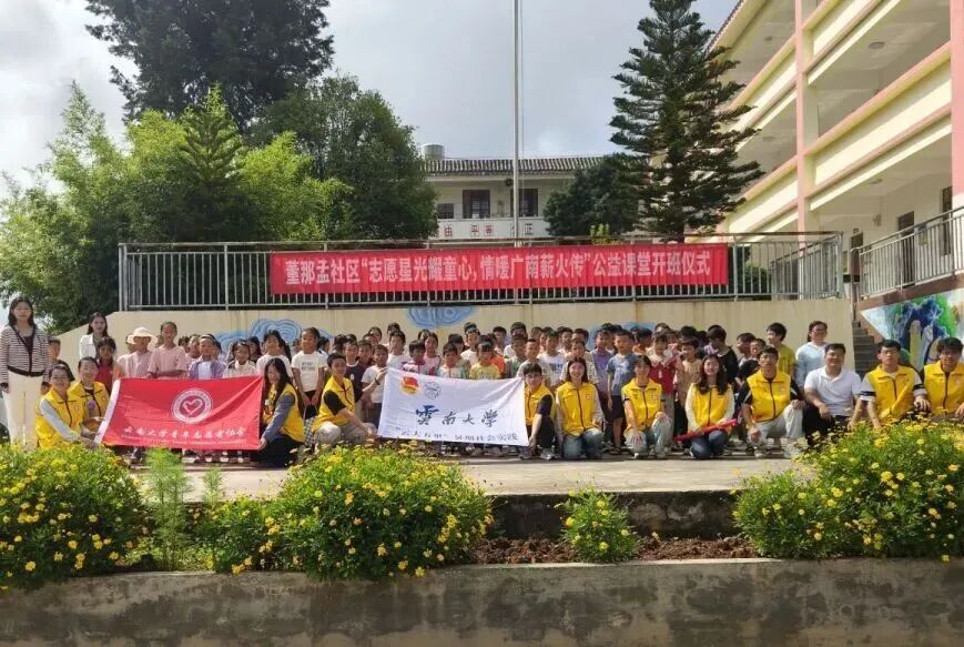 ②文山暑期公益课堂:7月16日-8月1日,云南大学青年志愿者协会携手云南省广南县董那孟社区居委会,开展了“志愿星光耀童心,情暖广南薪火传”公益课堂活动。12名云南大学青年志愿者协会的志愿者来到莲城镇董那孟中心小学,与孩子们度过了一个快乐而又充实的暑期课堂。
