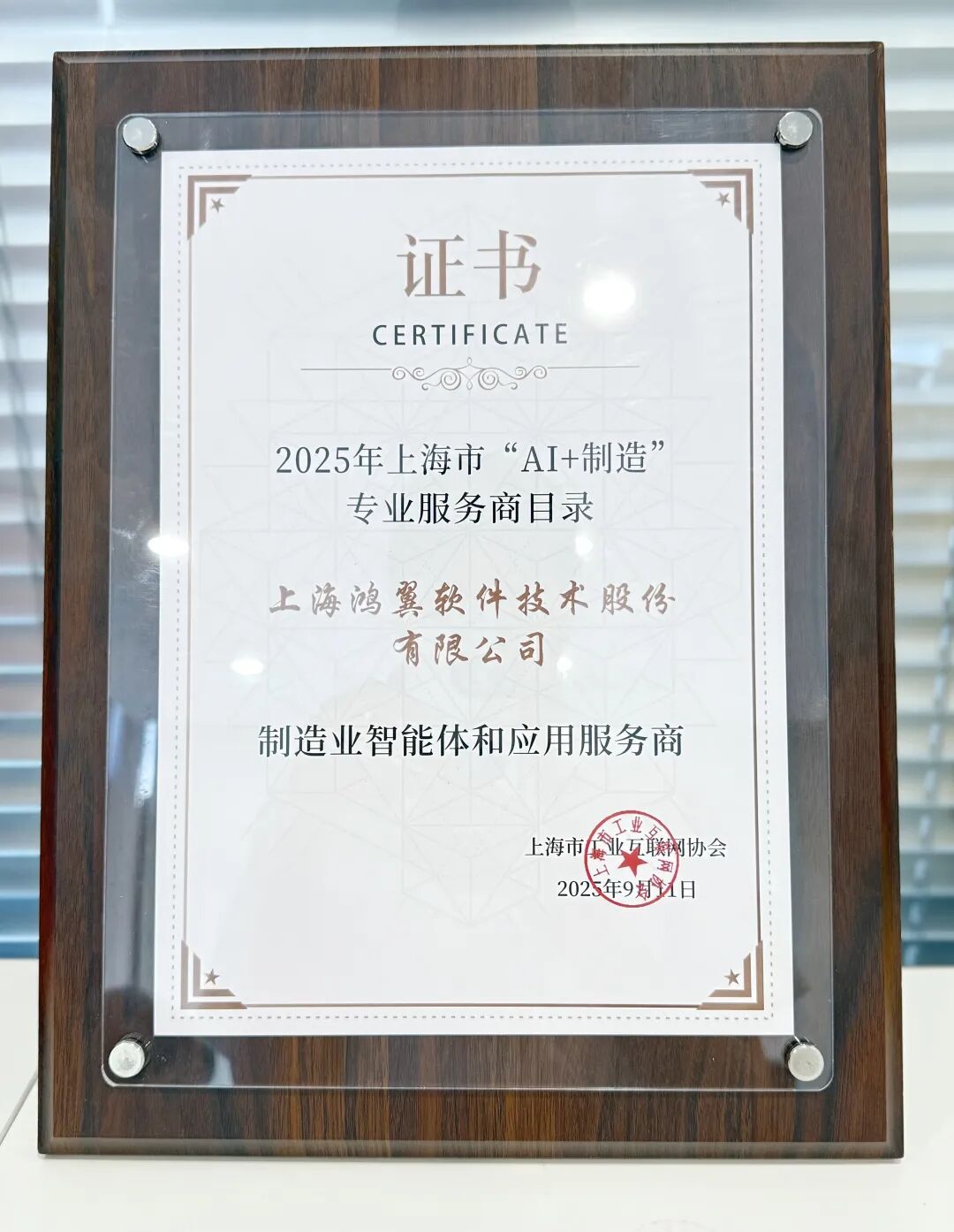 这一荣誉不仅是对鸿翼技术实力与服务能力的高度认可,更是对鸿翼在推动“AI + 制造”深度融合、助力企业数字化转型方面所做贡献的肯定。