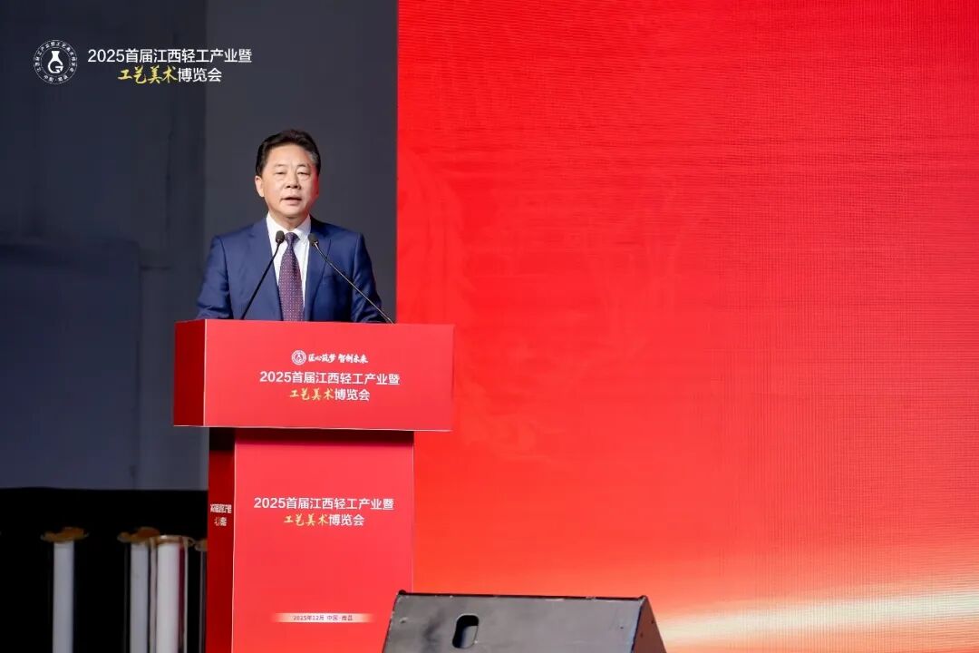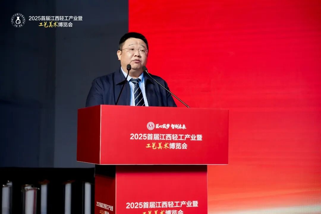 开幕仪式上,江西省轻工业联合会理事长郑正春在致辞中表示,江西轻工业底蕴深厚、特色鲜明,在省委、省政府领导下深入实施“1269”行动计划,保持了稳中有进、质效双升的良好态势,发挥了经济“压舱石”和稳就业、惠民生的重要作用。他提出,工艺美术是江西轻工的靓丽名片,产业格局完备,并对新认定的111位第七届省工艺美术大师表示祝贺,期望他们珍视荣誉、勇担使命,成为技艺传承与创新发展的引领者。他指出,轻工业是重要民生产业和具有国际竞争力的产业,本届博览会既是对发展成果的集中检阅,也是贯彻落实党的二十届四中全会精神、推动高质量发展的具体实践,相信必将凝聚共识、深化合作、激发创新,为产业稳增长、促消费、惠民生注入新活力,为传统文化与现代产业融合开辟新路径。