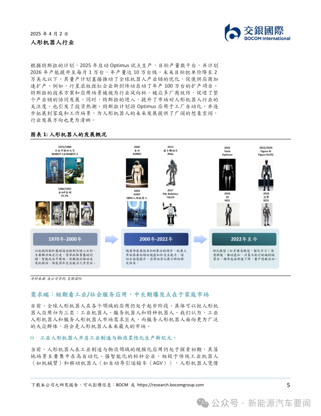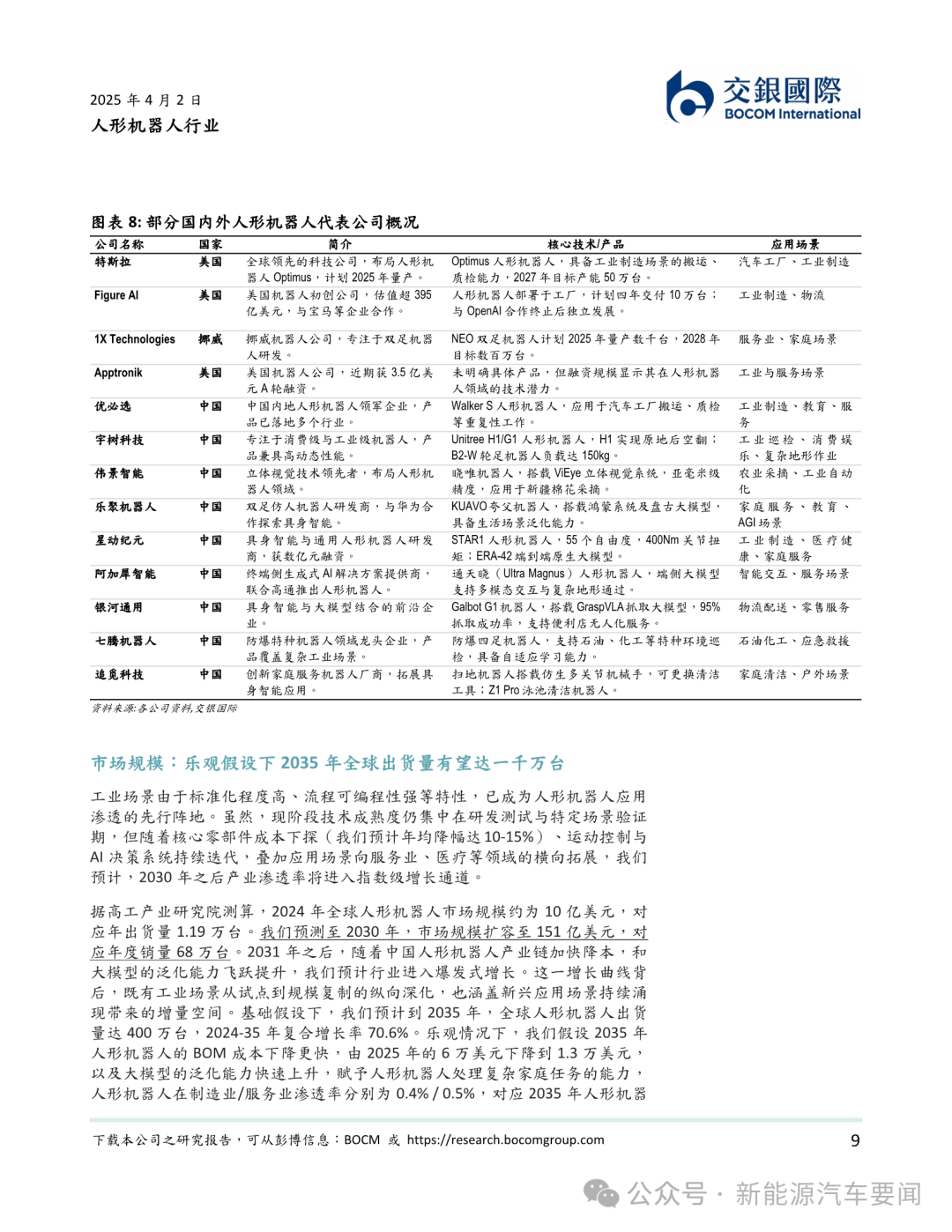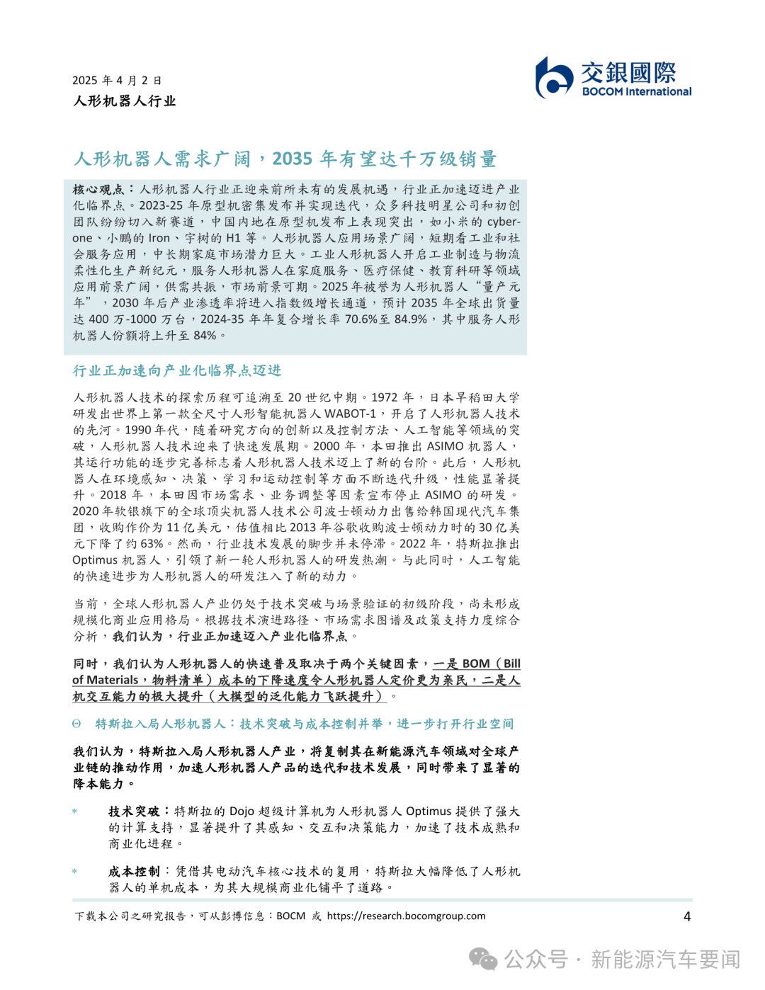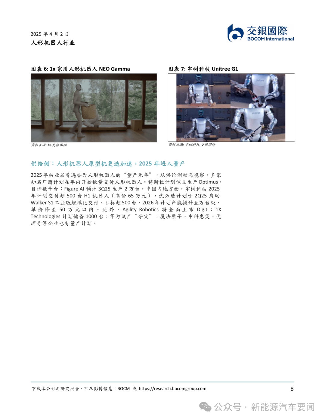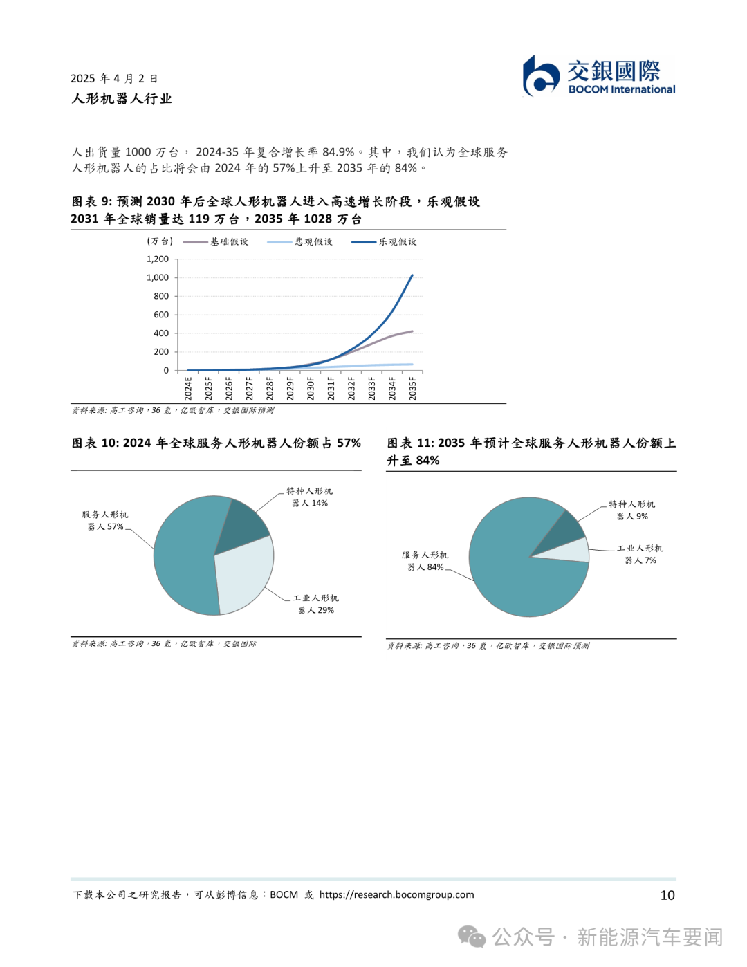 作为具身智能的代表之一,人形机器人发展正加速迈进产业化临界点。2025年,被业界普遍誉为人形机器人的“量产元年”。 我们预计2030年后产业渗透率将进入指数级增长通道,2035 年全球出货量或达400万-1000万台。中国内地市场方面,在政策驱动、技术拐点、场景革命、及本土供应链优势的多重共振下,人形机器人有望复制新能源汽车成功经验,形成领先优势。本文系统对比及梳理了人形机器人和新能源汽车产业链,并综合考量各零部件的价值量占比、技术难度以及国产化进度,我们认为,量产临近,建议关注确定性较强的核心零部件环节,包括行星滚柱丝杠、空心杯电机、六维力矩传感器和谐波减速器。