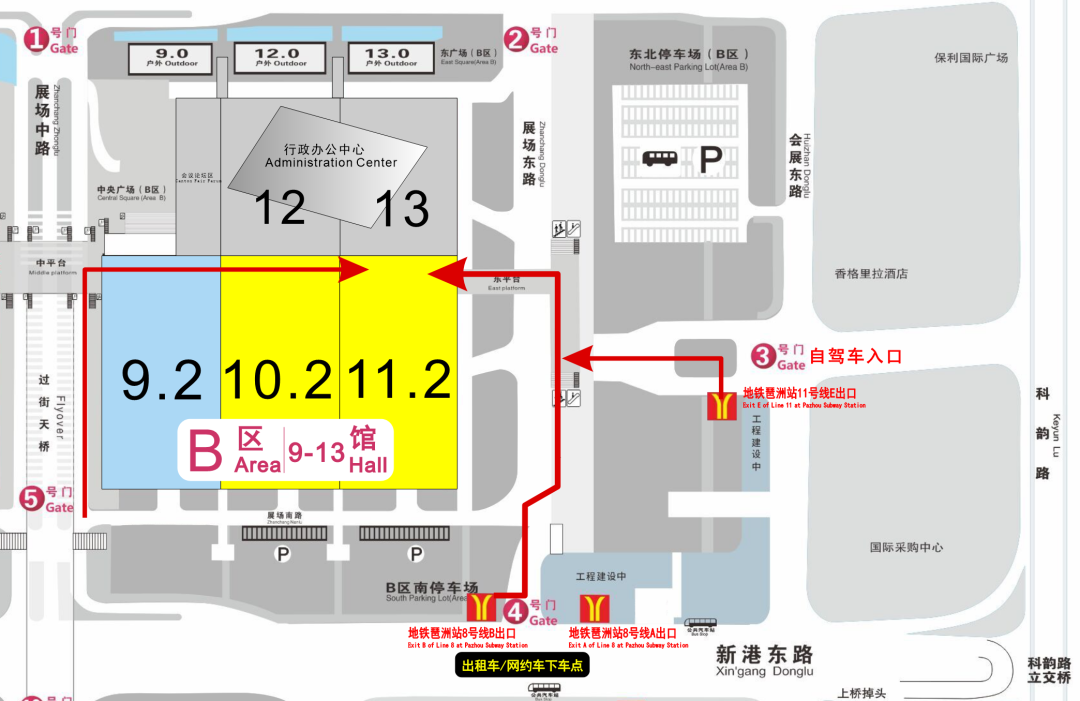 广州地铁8号线--琶洲站,B口出来,从4号门进入展馆