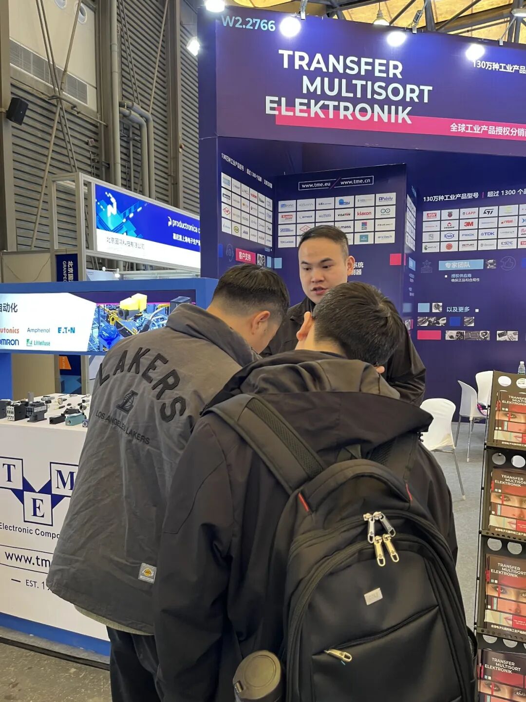 开展伊始,W2 馆 2766 展位便迎来大批工程师、采购负责人驻足咨询,现场洽谈氛围热烈。本次 TME 特美意以全品类现货、高效供应链、正品保障为核心亮点,全方位展现服务优势: