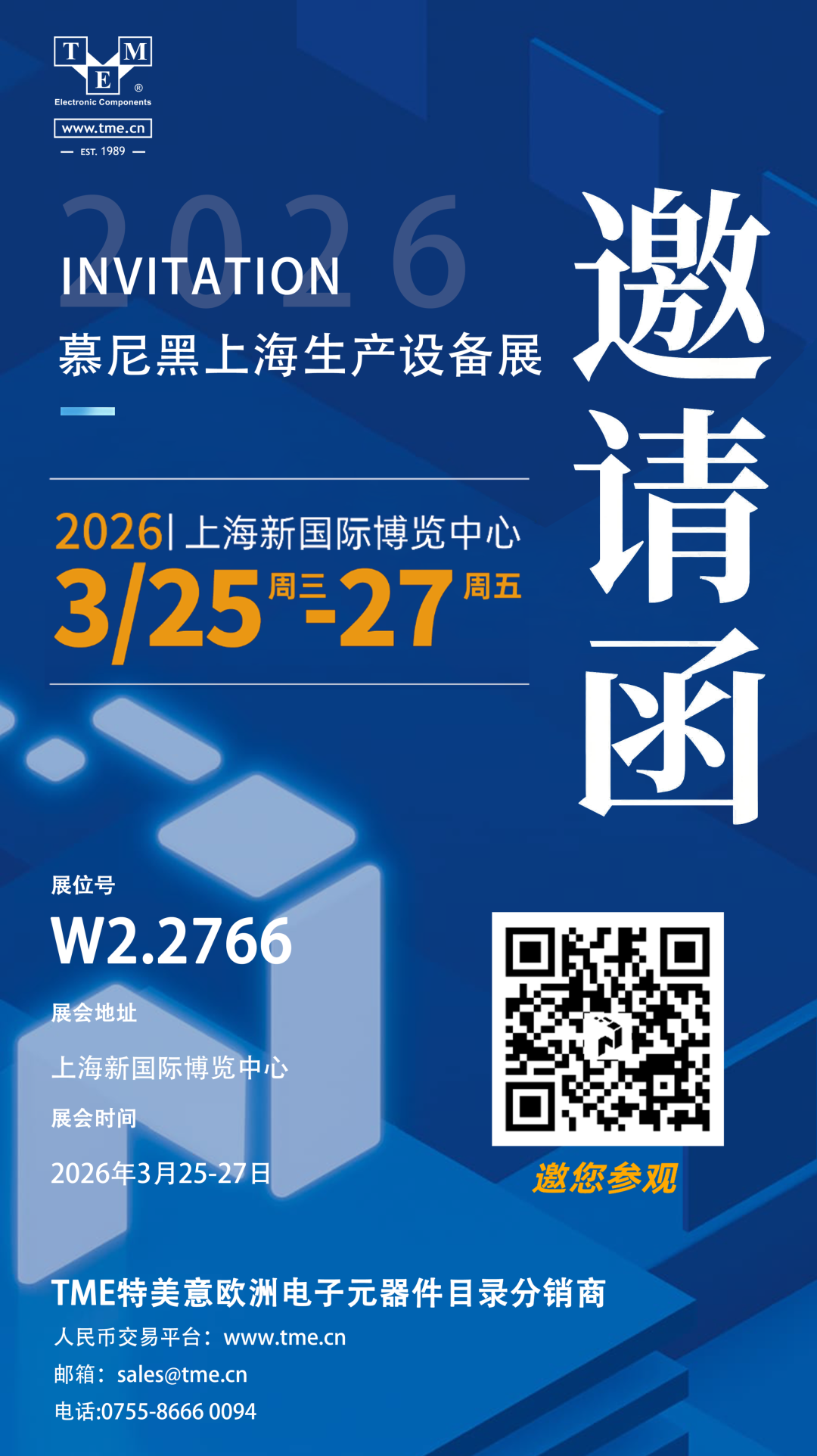 春启魔都,智聚盛会✨ 3 月 25 日,productronica China 2026 慕尼黑上海电子生产设备展在上海新国际博览中心盛大启幕!作为欧洲顶尖电子元器件目录分销商,TME 特美意携全品类现货元器件与一站式供应链服务重磅亮相 W2 馆 2766 展位,首日便凭借硬核实力与专业服务成为现场人气焦点,与全球行业伙伴共赴电子制造全产业链创新盛宴。