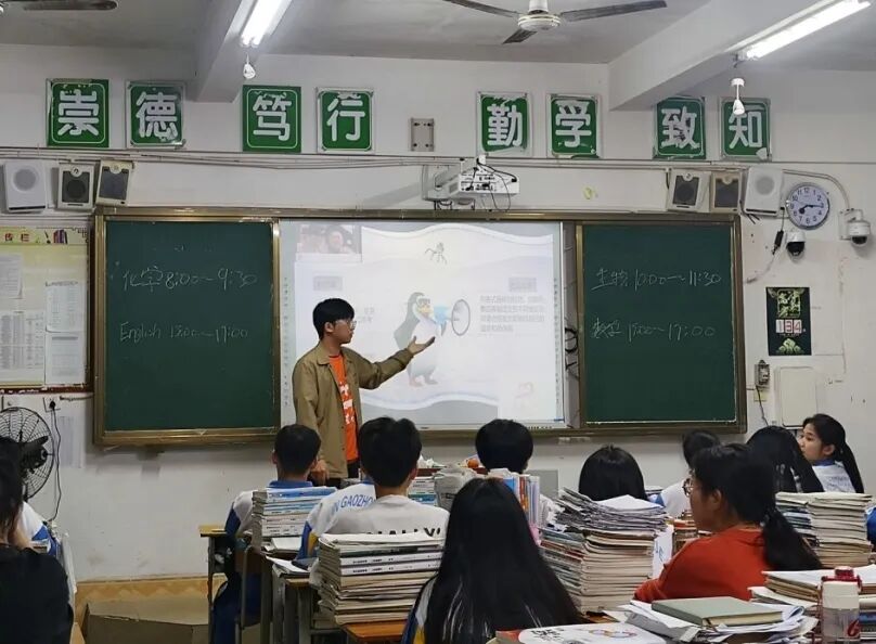 当临高中学的铃声再次响起,熟悉的走廊里迎来了一群特别的“老同学”。2026年1月25日,返乡的志愿者们带着大学的成长与感悟,重新站上了高中的讲台。他们不是来上一堂课,而是来赴一场青春的接力——把自己走过的弯路、收获的经验和对未来的憧憬,都讲给正在为高考奋斗的学妹学弟们听。