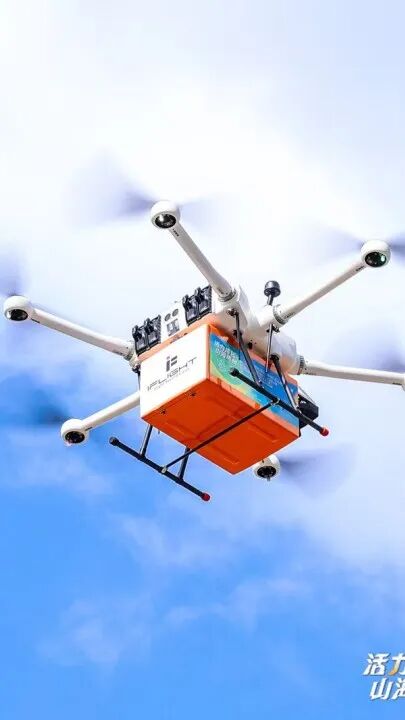 仪式进入高潮——“从指尖到天际,放飞湾区梦想”启动环节上演。一架物流无人机将一箱融合传统意蕴与现代科技的“科技白鸽”精准投送至舞台。