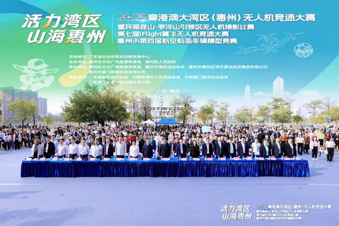 12月15日至21日,2025年粤港澳大湾区(惠州)无人机竞速大赛暨系列赛事在惠州市惠阳区成功举办。这场集科技、体育、文旅于一体的低空经济盛会,以一场惊艳的开幕式启程,经过五天激烈角逐,最终在丰收的喜悦中圆满闭幕。从指尖到天际的梦想,在此刻被赋予了沉甸甸的重量与清晰的模样。