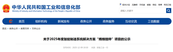 关于2025年度智能制造系统解决方案“揭榜挂帅”项目的公示