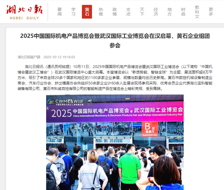 10月11-13日,2025中国国际机电产品博览会暨武汉国际机床展在武汉国际博览中心成功举办。本届博览会以“新质势能、智链全球”为主题,吸引了来自全球20多个国家和地区的1100多家企业参展,规模与数量均创历史新高。