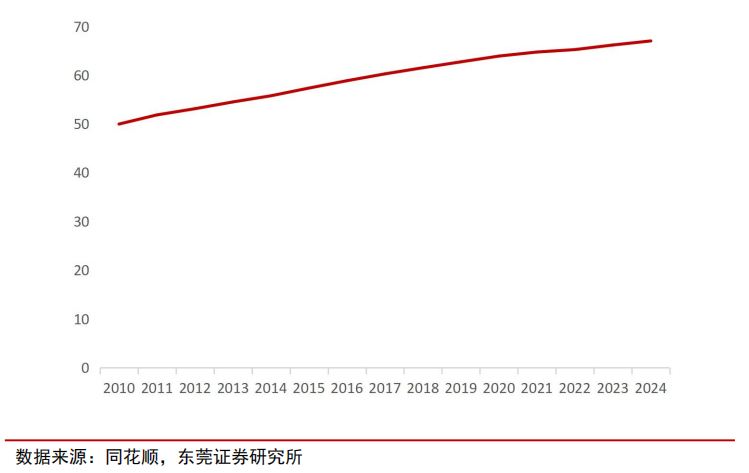 2010—2024 年我国城镇化率(%)