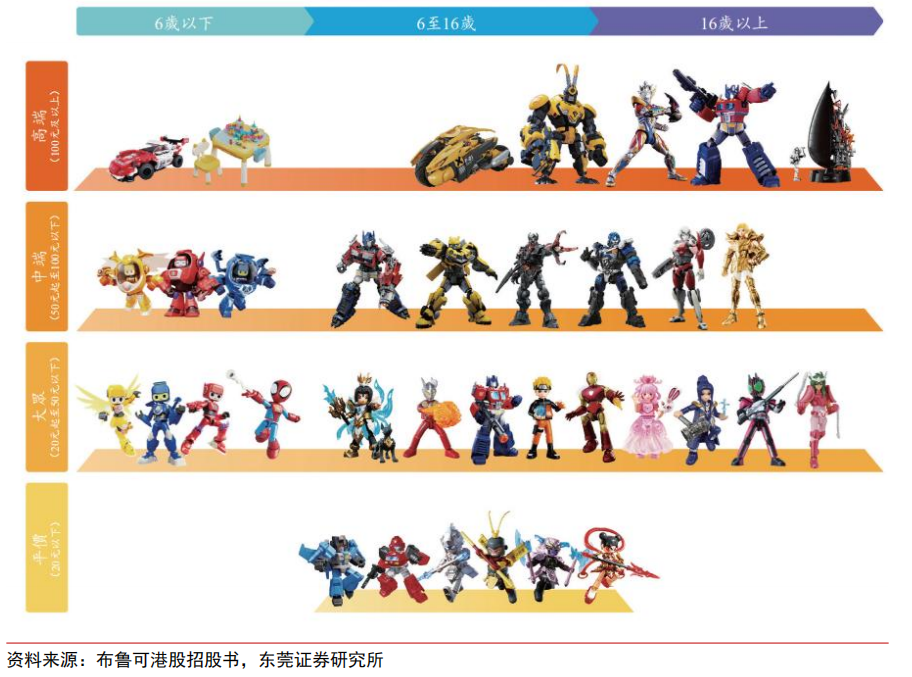 公司已建立较为丰富的 IP 矩阵。公司旗下 IP 分为自有 IP 和授权 IP。其中自有 IP 包括儿童益智类的百变布鲁可和中国传统文化主题的布鲁可英雄无限,授权 IP 包括奥特曼、变形金刚、漫威、火影忍者、小黄人、名侦探柯南、初音未来、圣斗士星矢、哈利•波特、星球大战等超过 50 个全球知名 IP。公司已建立较为丰富的 IP 矩阵,有助于触达更多年龄段的全球消费者。同时公司通过大量的 SKU、完整的价格带构建了网络化的广泛产品组合,持续为消费者提供丰富的产品选择。截至 2024 年6 月 30 日,公司共有431款在售 SKU,2025 年上半年新推出 273 个 SKU。