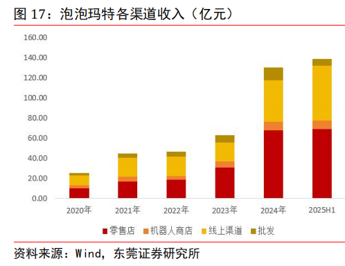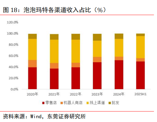 全渠道差异化运营。公司产品主要在中国内地、港澳台及海外销售。渠道主要包括线下渠道、线上渠道、批发渠道及其他。截至 2025 年上半年末,公司线下在全球 18 个国家运营 571 家门店和 2597 台机器人商店,其中在中国市场运营门店443 家,在亚太、美洲及欧洲分别运营门店 69 家、41家和 18 家。线上渠道方面,中国内地线上渠道包括泡泡玛特抽盒机、天猫旗舰店、抖音平台以及其他线上渠道;港澳台及海外线上渠道包括泡泡玛特官方网站、Shopee、TikTok 平台和其他线上渠道。2025 年上半年,公司抽盒机持续发挥场景化、娱乐化购买体验的渠道优势,聚焦人群精细化运营,有效承接快速增长的新客流量,进一步提高交易转化率。内容电商渠道聚焦商品效能优化,注重消费者使用场景,满足多元化需求。平台电商旗舰店得益于不断强化精准营销和消费者互动形式的多样化,推动潜力 IP 和品类的增长。随着全球业务的推进,公司官网已覆盖 37个国家,其中 34 个国家同步上线了自研 APP。另外,针对不同市场特点与当地三方平台生态,实施差异化运营。在东南亚通过Shopee 与 Lazada 触达本地消费者;在欧美市场,借助Amazon 的规模与物流能力,叠加站内与站外投放,稳步提升当地影响力。