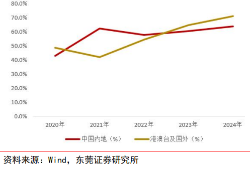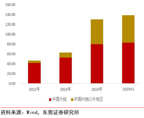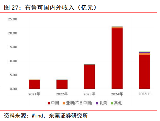 业绩保持高增。2018—2024 年,公司收入规模保持扩大;净利润仅在 2022 年短暂回落,其他年份保持提升。2018 年—2022 年,公司营业总收入从 5.2 亿元增长至 130.4 亿元, CAGR 达到 71.4%;归属普通股东净利润从 1.0 亿元增长至 31.3 亿元,CAGR 为 77.5%。 2025 年上半年,公司实现营业总收入 138.8 亿元,同比增长 202.4%;实现归属普通股东净利润45.7 亿元,同比增长 396.5%;业绩实现大幅增长主要得益于国内市场和海外市场均实现了高速增长。分地区来看,上半年,公司中国(含港澳台地区)实现营收 82.8亿元,同比增长 135.2%;海外(含亚太、美洲、欧洲及其他地区)实现营收 55.9 亿元,同比增长440%,其中美洲收入同比增长达超 11倍。