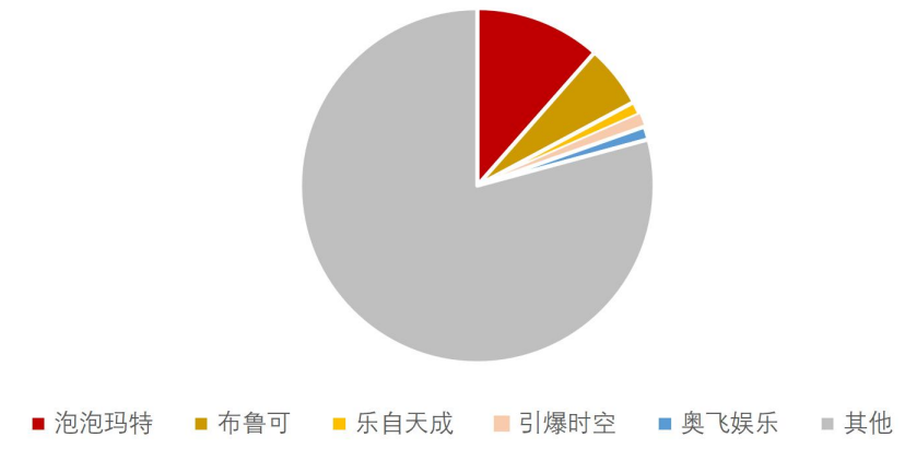 我国潮玩市场竞争格局相对分散。考虑到该行业的进入门槛相对较低,我国 IP 玩具行业市场竞争格局相对分散。根据中商产业研究院数据,2024 年我国 IP 玩具行业市场中,作为全球标杆企业的泡泡玛特市场份额最高,为 11.5%;拼搭角色类玩具市场龙头布鲁可的市场份额在 IP 玩具行业中位居第二,份额为 5.7%;其余公司的市场份额不足 5%。乐自天成、引爆时空与奥飞娱乐的市场份额均在 1.2%左右。