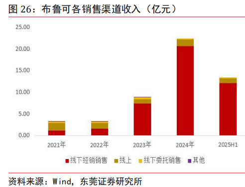 公司已建立多渠道销售网络,大力拓展海外市场。公司渠道包括线下销售渠道和线上销售渠道,其中线下渠道包括经销及委托销售,线上渠道主要包括天猫、京东、抖音、拼多多等各种电商平台以及公司的微信小程序布鲁可积木人 Club。线下经销商渠道是公司主要的收入来源。公司近几年积极开拓经销商,经销商数量由 2021 年的 225 家增长至2024H1 的 511家,分布在一二三线及以下城市。公司加大力度拓展海外市场。2025 年上半年,公司海外市场实现收入 1.11亿元, 占比约为8%,其中亚洲(不含中国)和北美市场分别实现收入 0.57 亿元和0.43 亿元, 占比分别为4%和 3%。未来海外市场还有较大拓展空间。