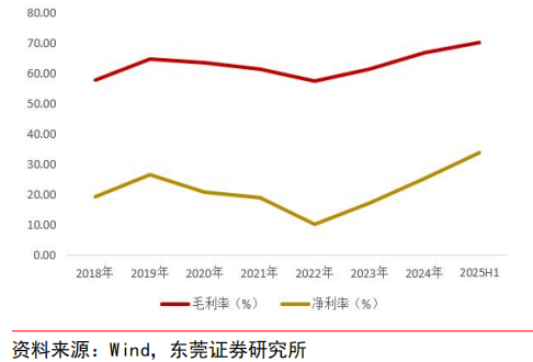 盈利能力保持上升。得益于优秀的 IP 运营能力及全球化战略推进,公司保持较高的盈利能力。毛利率净利率在 2020-2022 年间有所回落,2023-2025H1 持续提升。2025 年上半年,公司毛利率达到 70.34%,同比提升 6.3 个百分点,主要得益于海外销售占比上升,优化产品设计以及加强成本管控等。得益于毛利率提升及费用率下降,上半年公司净利率同比提升 12.7 个百分点至 33.74%。