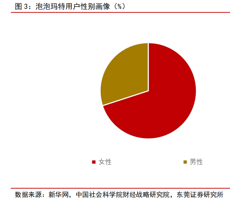 潮玩消费群体以女性居多。因潮玩在审美与设计、情感价值等方面具有更明显的特征,与传统玩具相比,女性消费者群体占比整体高于男性。根据中国社会科学院财经战略研究院数据显示, 以泡泡玛特为例,其用户性别画像中女性的占比为 70%左右,男性的占比为 30%左右。