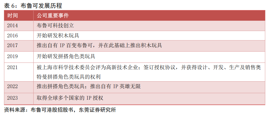 公司是我国拼搭角色类玩具的领导者。公司创立于 2014 年,2025 年 1 月于港交所上市,主要从事拼搭类玩具的设计、研发和销售。公司通过 500 多个的专利布局,原创 IP 能力,和与约 50 个知名 IP 的非独家合作关系,聚焦为消费者提供好而不贵的广泛拼搭角色类玩具产品并取得了快速成长。公司的拼搭角色类玩具高度还原了 IP 角色的神韵。通过强大的产品力与供应链能力的结合,公司不仅能够保持成本优势而且能够持续开拓玩具品类。公司在中国建立了多渠道销售网络,形成了全面且覆盖广泛的消费者触达。