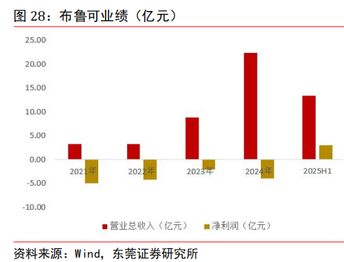 收入保持快增,净利润实现扭亏为盈。2021—2024 年,公司营业总收入从 3.3 亿元增长至 22.4 亿元,CAGR 达到 89.4%,主要得益于销量增长。受费用上升拖累,公司 2021— 2024 年净利润持续亏损。2025 年上半年,公司实现营业总收入 13.38 亿元,同比增长27.9%;实现归属普通股东净利润 2.97 亿元,同比扭亏为盈,主要得益于销量增长及费用率的下降。