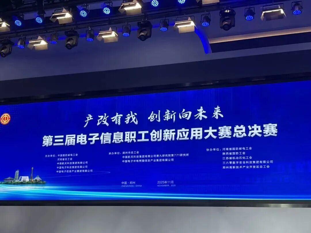 11月6日,由中国国防邮电工会、河南省总工会、航天科技、中国电科、中国电子联合主办的“第三届全国电子信息职工创新应用大赛”决赛在河南郑州圆满落下帷幕。中国电子选拔推荐的15名选手参加了三个赛道的总决赛,最终赢得一项冠军、一项季军、五个一等奖、三个二等奖,共计10名选手斩获奖项。中国电子企业工会联合会荣获“优秀团队奖”和“优秀组织单位奖”。党组副书记、董事陈扬帆出席大赛颁奖典礼。