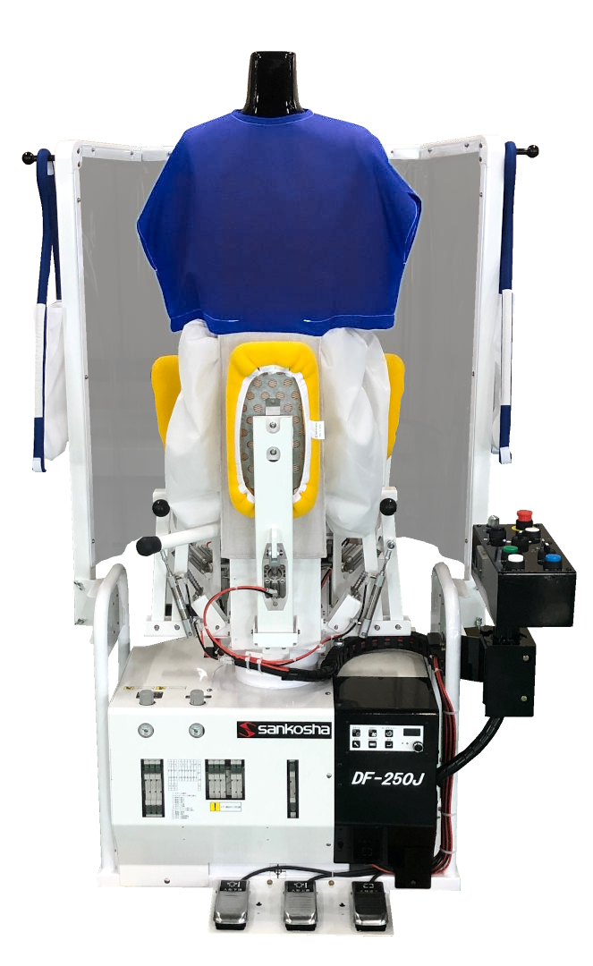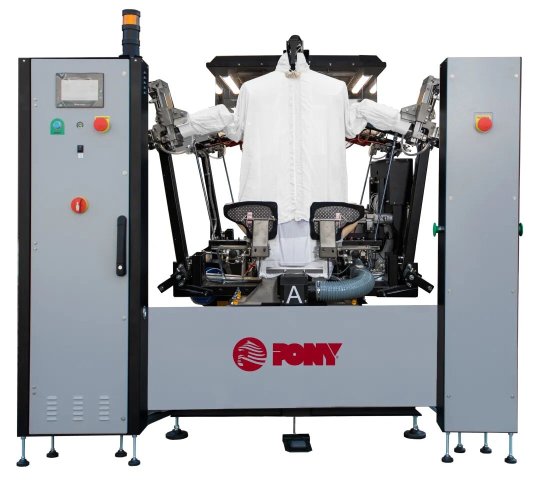 适用于衬衫、厨师服和医用制服的热风吹烫整形设备。配备旋转双模标准人像、两个肩部压烫装置、椭圆气动袖管张紧夹和智能PLC触摸屏。可根据需求选配高效热能回收系统H.A.R.S. 装置。