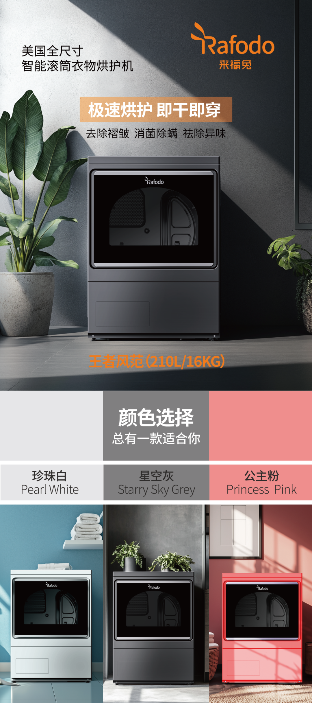 大容量:210升(7.4立方英尺)的容量,可处理16公斤(35磅)的衣服。