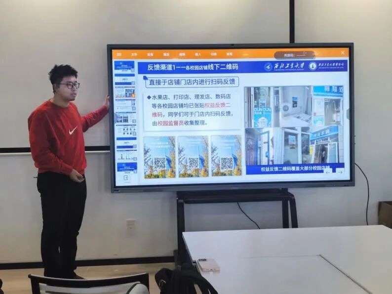 校学生会权益服务中心负责人王智铎向大家介绍了我校学生会权益服务中心的部门职能,普及权益问题相关反馈渠道,同时汇报了各职能部门切实解决同学权益问题所落实的成果。
