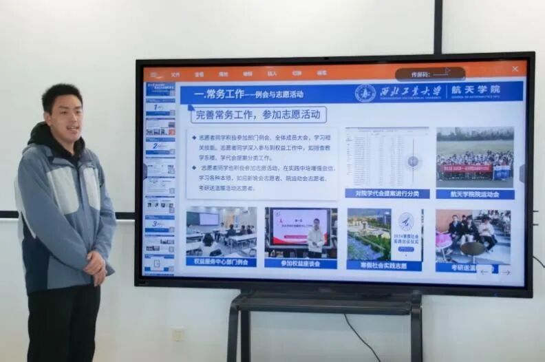 首先,航天学院权益服务中心负责人李兆轩详细介绍了航天学院权益服务中心的工作概况,总结了过去半年航天学院权益服务中心的工作情况和工作成果。