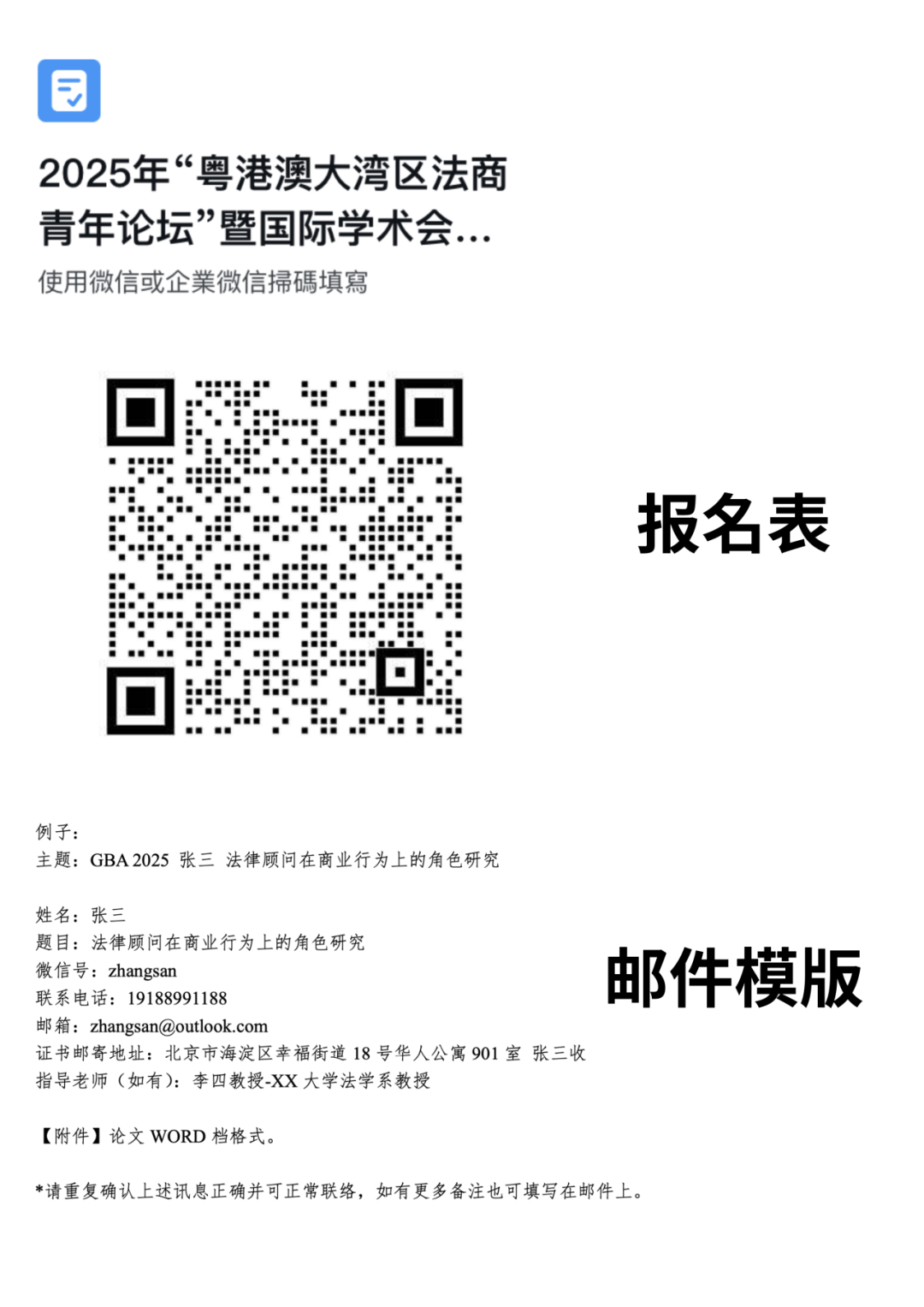 (报名表及邮件模版)