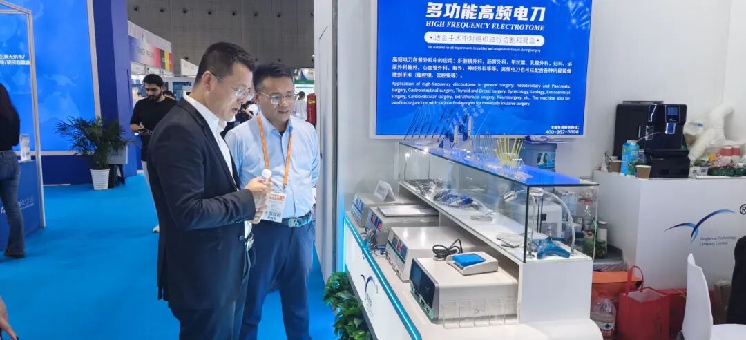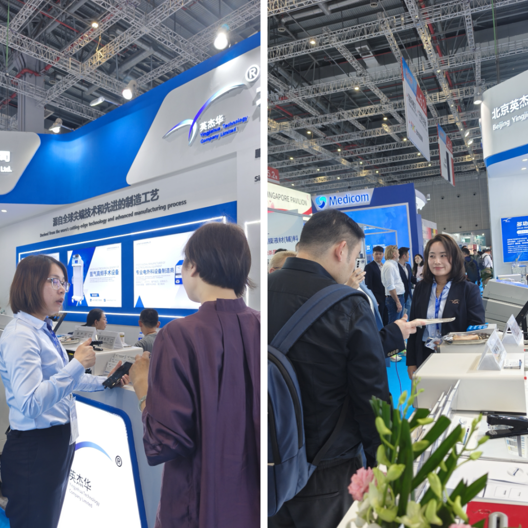 展位前,公司领导携核心团队热情接待每一位来宾,通过专业讲解、现场演示、深度互动,全方位展示了我司自主研发的高频电刀系列产品,吸引了众多行业专家、医院代表及合作伙伴驻足交流,现场反响热烈,通过生动的实物演示和专业的讲解,让每一位到访者都能直观体验到英杰华产品在精准切割、快速止血等方面的卓越表现。