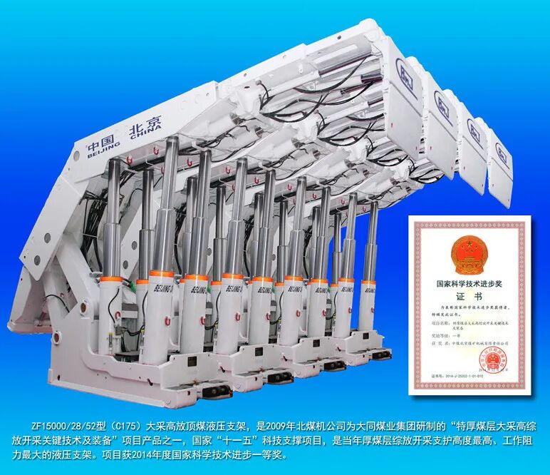 近年来,北煤机公司坚持创新驱动发展的核心地位不动摇,建设形成以“国家企业技术中心、国家能源煤矿采掘机械装备研发(实验)中心、国家能源煤矿支护装备技术评定中心、国家CNAS认可检测中心、北京市设计创新中心、煤炭行业工程研究中心、北京高精尖产业设计中心和博士后科研工作站”为核心的“七中心一站”研发创新平台。围绕煤矿智能化发展趋势和能源变革方向,不断分析研究国内外各大矿区地质条件变化和开采技术发展,持续提升新产品、新材料、新工艺、新技术水平。研发生产了安全防冲超前支护系列支架、“110”工法及“N00”工法切顶卸压成巷支架、物料充填及矸石回填支架、超大伸缩比支架、大采高放顶煤智能支架,钾盐矿高防锈防腐蚀支架、纯水支架等个性化、差异化新产品130余种,开发了全数字双CAN+5G多通道传输智能控制系统、“中国芯”BM18C电控、UWB人机物精准定位等智能控制产品。完成了免喷涂钢板及不预热钢板焊接、超高速激光熔敷、闪钨等新工艺技术,储备了原子渗、化学镀、涂料喷涂、QPQ、纳米罩光涂层等表面防锈、防腐处理技术。“超高速激光熔覆技术研究与应用”获国家光学工程学会科学技术发明一等奖。“基于DMG标准的高端产品超高疲劳寿命试验及方法”获第七届中国工业大奖提名奖。先后获得国家科技进步奖一等奖2项,二等奖2项,国家优秀发明专利优秀奖2项,煤炭协会特等奖1项,省部级科技奖70多项;北煤机液压支架产品成功获评国家工信部与中国工业经济联合会第七批制造业单项冠军产品;北煤机公司荣获AAA级企业信用等级称号。
