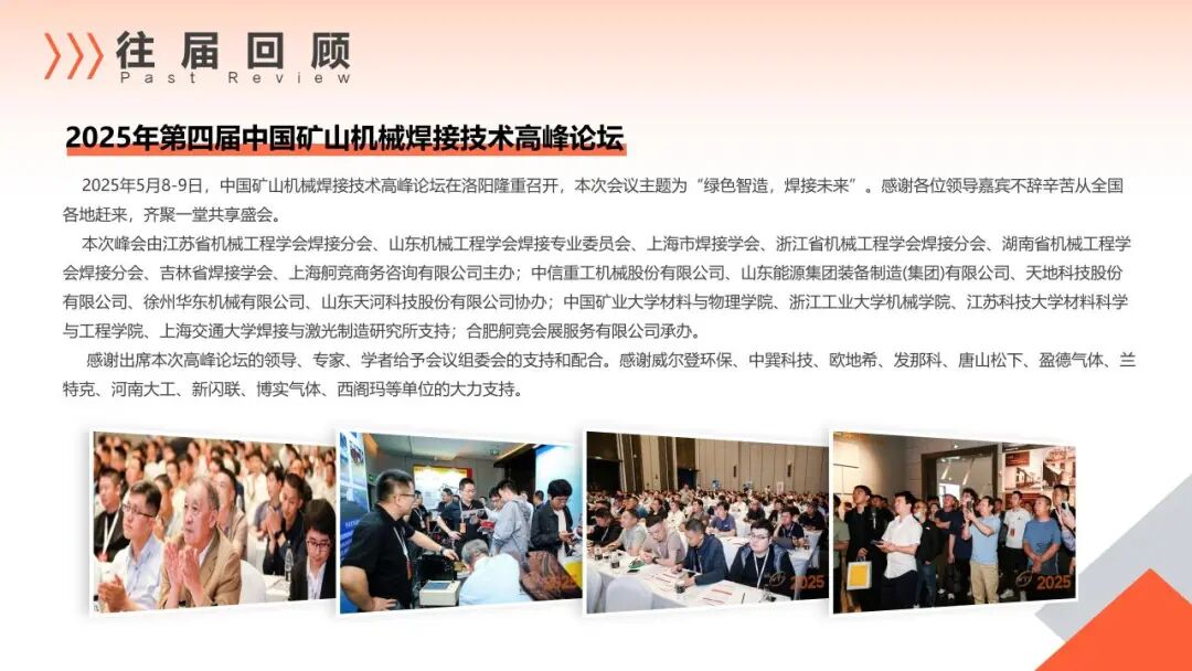 为深入探讨矿山机械焊接技术的智能化转型路径,推动行业创新与协作,提升中国矿山装备制造的全球竞争力,中国矿山机械焊接技术高峰论坛将于2026年4月16-17日在“千年古都、常来长安”的西安隆重举办。我们诚挚邀请您拨冗出席,共襄盛举!